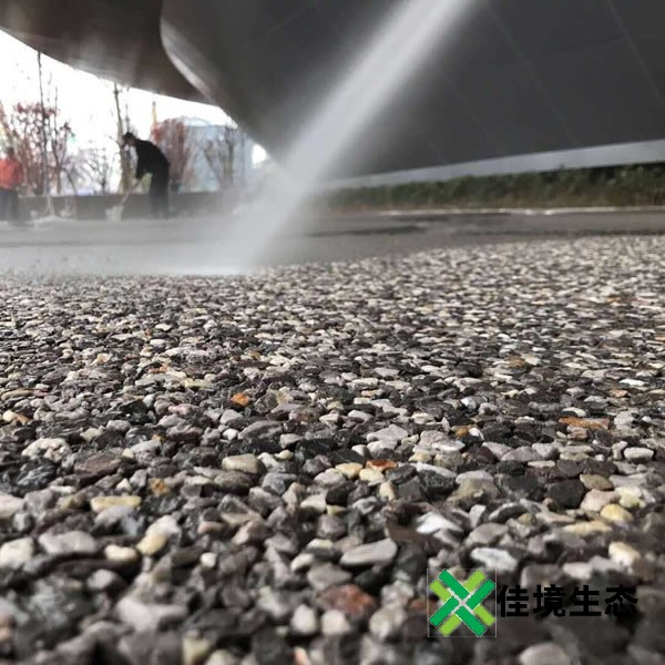 露骨料透水混凝土需要噴灑緩凝劑,過(guò)一段時(shí)間后,還需要用高壓水槍把面層的水泥漿沖洗干凈,露出石子本身的顏色。